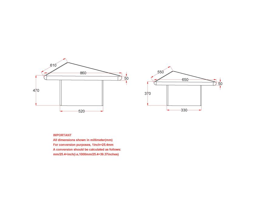 - 2-piece sturdy triangular table design