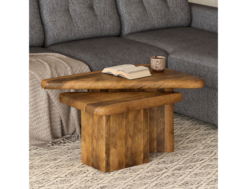 Geometry plays a big part in how our spaces come to life - these triangular tables work well create that visual interest. The solid mango wood tables have varying heights so they can be nested together or placed separately, whatever configuration appeals to you. Thick and sturdy tables tops are great to hold a host of snacks for a dinner party, or to kick your feet up on at the end of the day. Smaller scale tables will work well in smaller spaces, or nested together will create a larger table look.