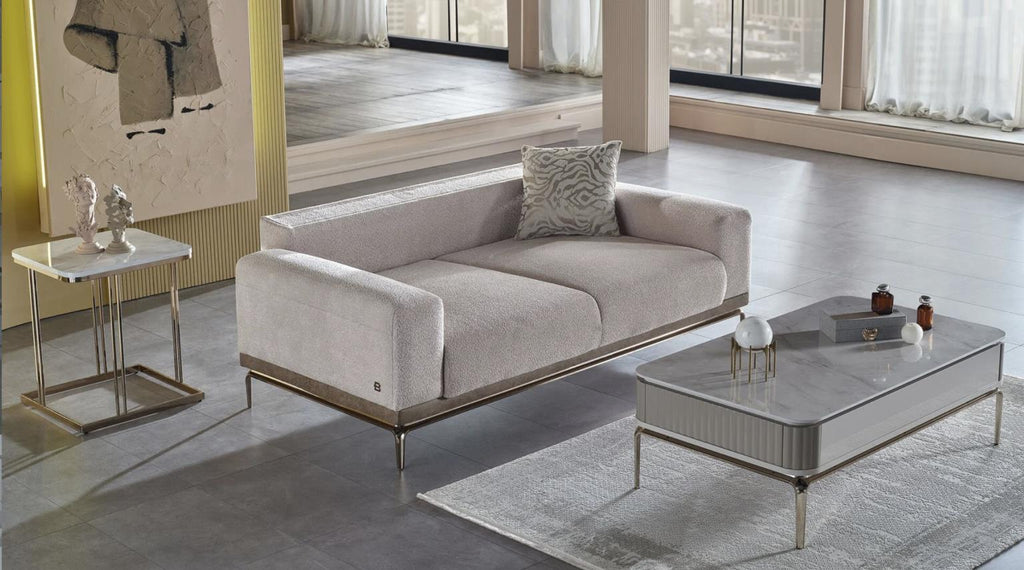Supported by slim, polished metal legs, the Estella Loveseat combines durability with a light, elevated design that enhances the sense of space in any room.