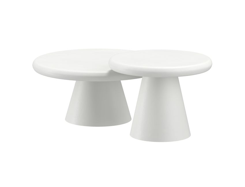 There is no doubt that white textured pieces can create a serious style statement in any space. These tables are no exception - the cement finish gives an earthy, grounded look to the contemporary shape for the perfect modern coffee table set. Clustered together or placed separately, this table set is great for smaller spaces or cozy nooks.