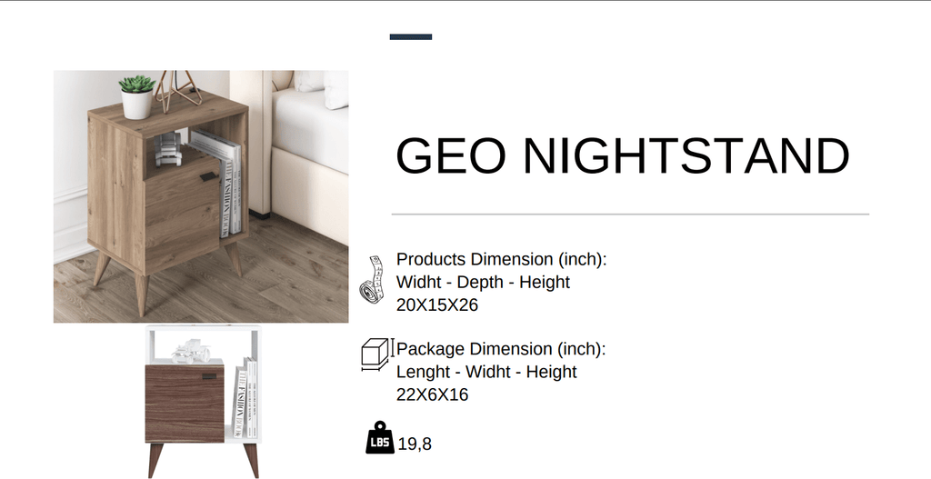 Upgrade your bedroom with the GEO Nightstand, a modern and compact bedside table designed for small spaces and contemporary interiors. With its clean geometric form, warm wood finish, and raised legs, this nightstand adds both style and practicality to your room.