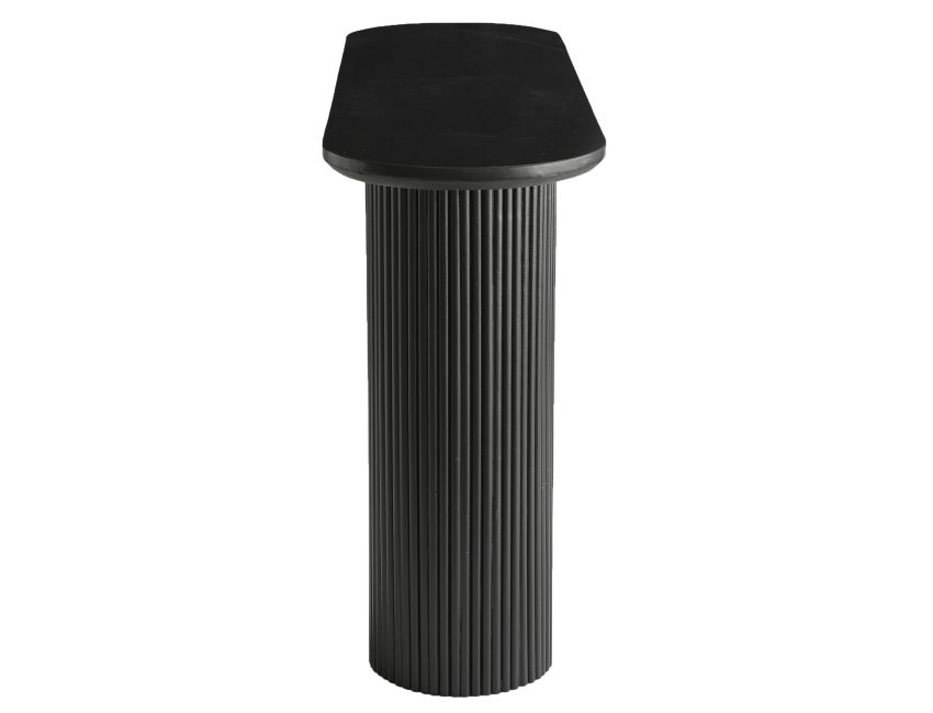- Double pedestal solid mango wood reeded base in a black finish