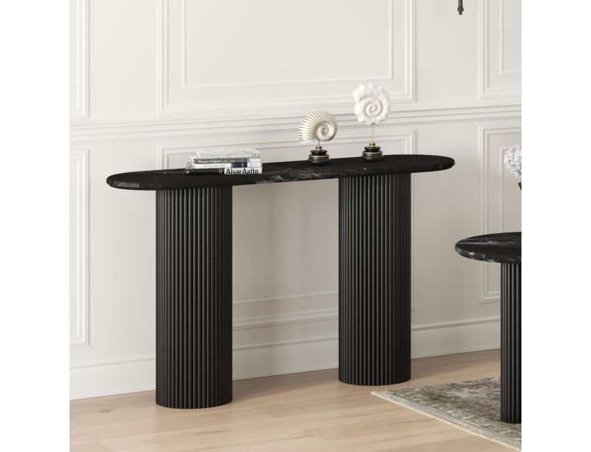 - Thick, bevelled, black marble table top