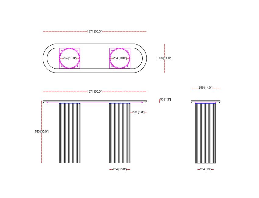 - Dimensions: 50 x 14 x 30"H