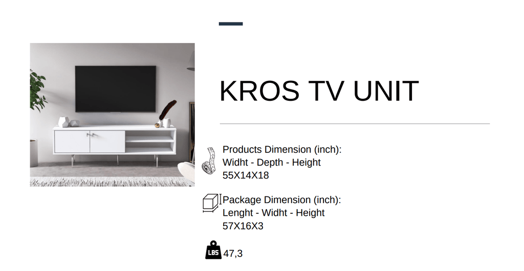 KROS TV Unit – Modern White Media Console