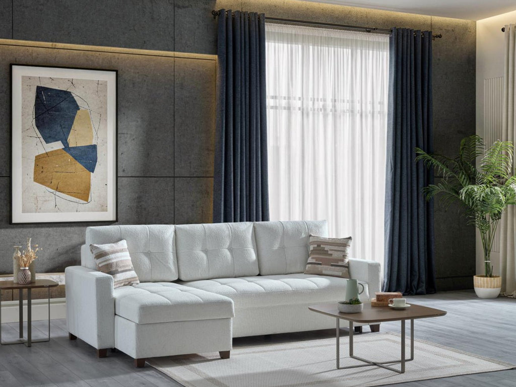 The Mocca Corner Sofa is a versatile and stylish solution for modern living spaces, combining functionality with a clean, contemporary design. Available in Niva White, Hanedan Vizon, Dupont Gray, and Dupont Anthracite, each option offers a distinct look while maintaining the same high level of comfort and practicality.