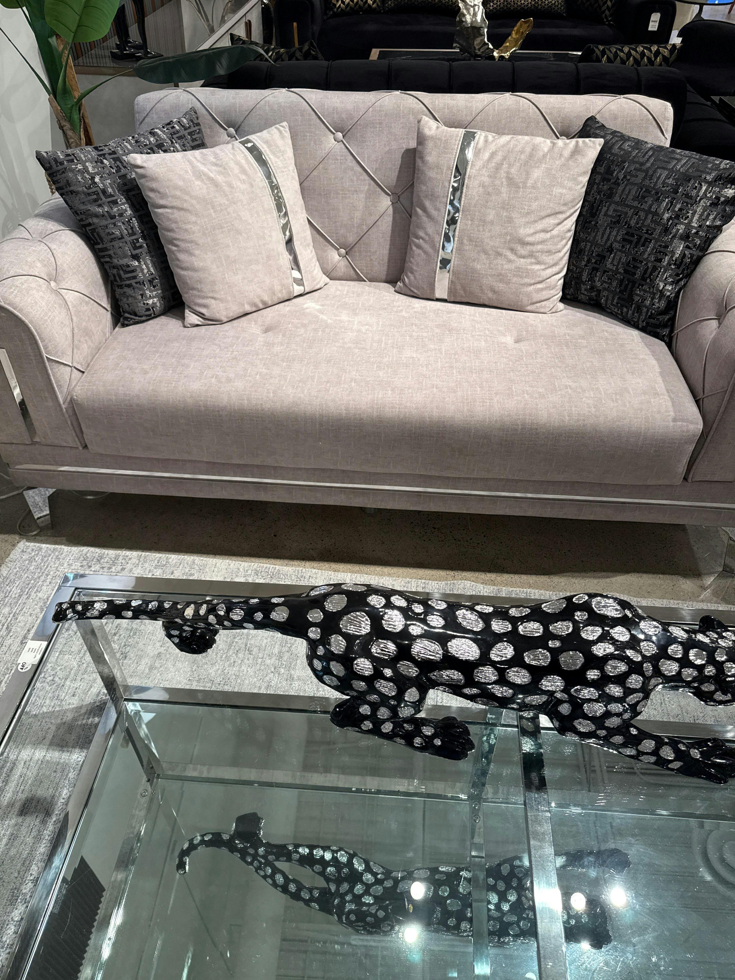 The legs are made from gold or silver metal, enhancing the sofa’s stylish appearance and providing solid support.