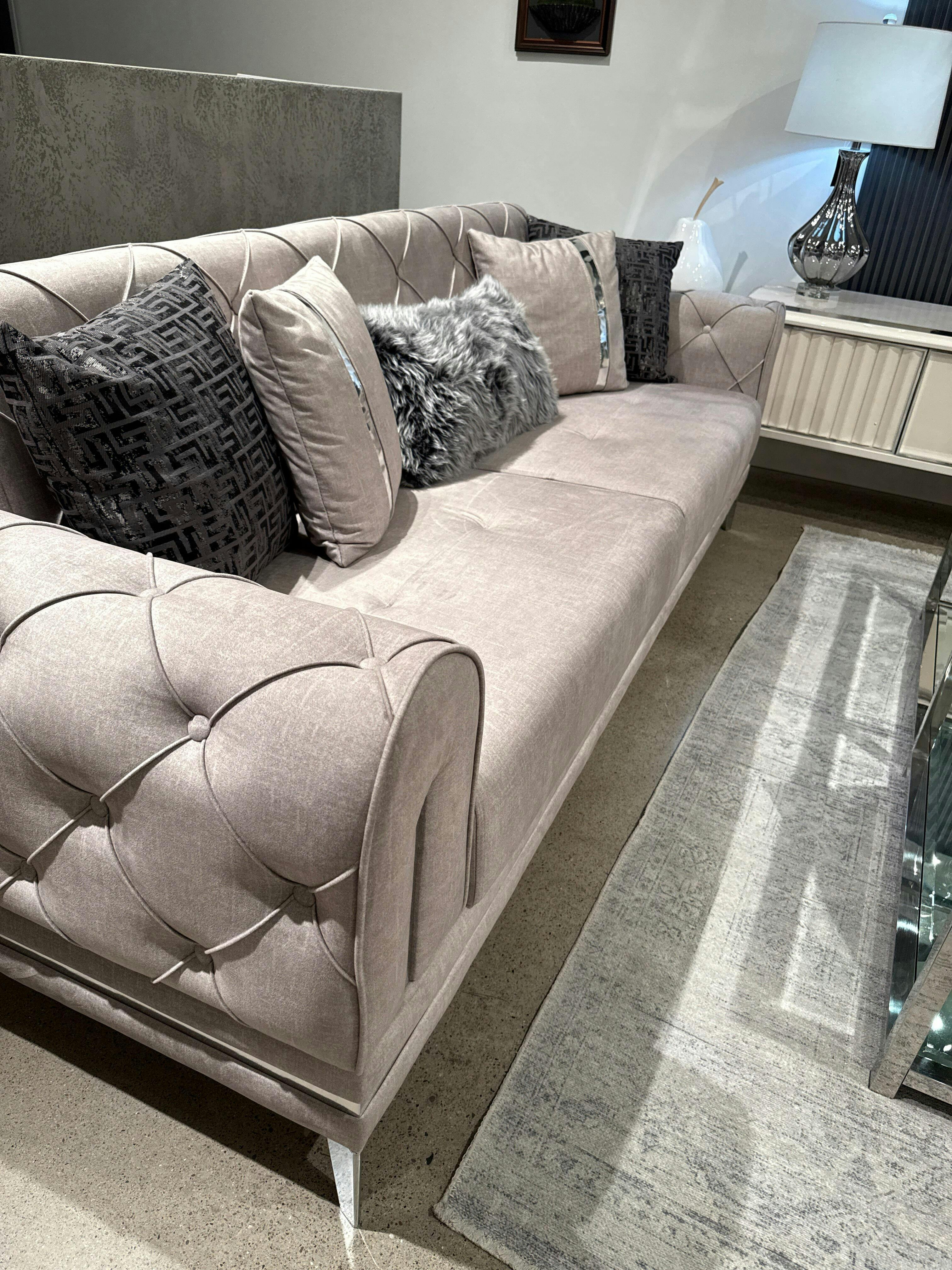 The Helena Sofa offers a sophisticated, multifunctional design that suits both contemporary and classic interiors. Available in Grey, Dark Grey, and Beige, this Turkish sofa boasts a modern aesthetic with gold or silver metal frames and legs, decorative pillows, and a unique ability to transform into a bed while providing extra storage space. Its 32 DNS foam cushions deliver superior comfort, and the water/stain-resistant velvet fabric ensures easy maintenance, making it perfect for high-traffic areas.